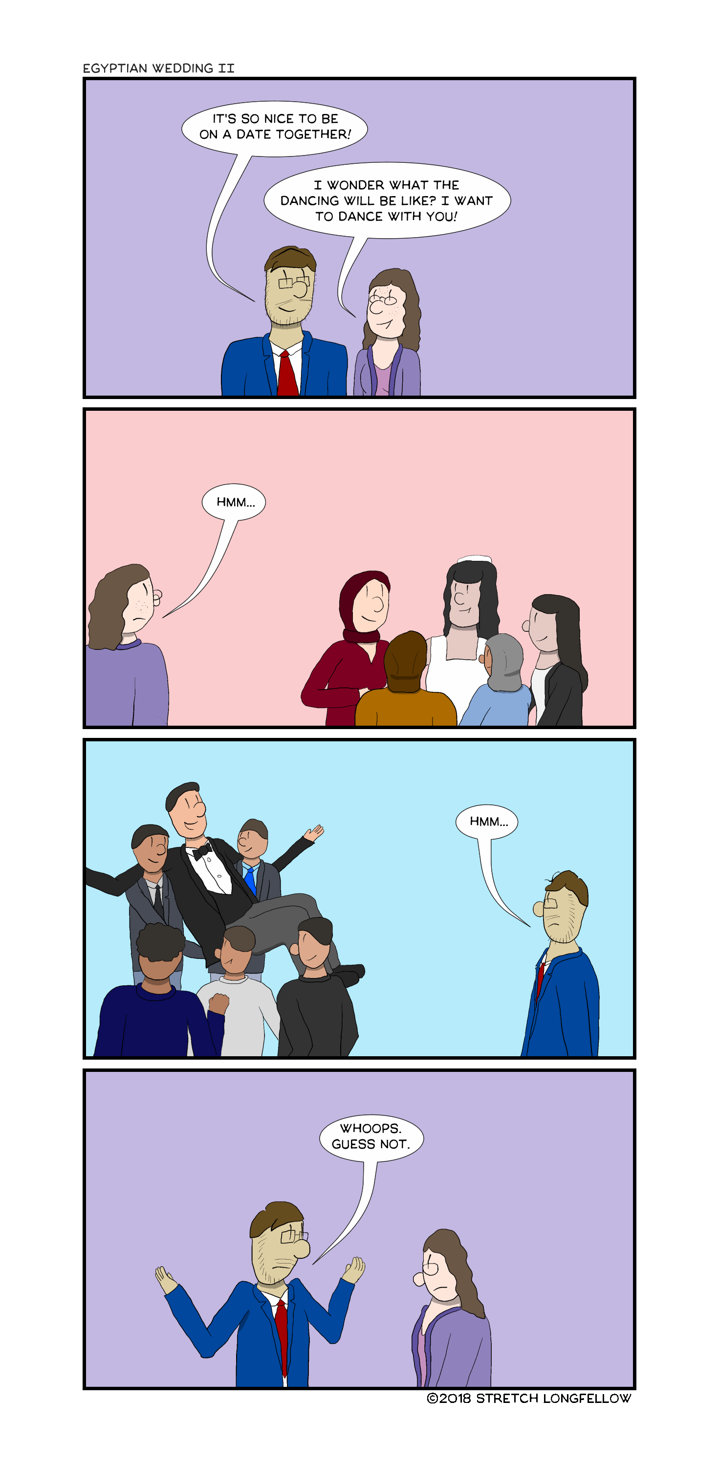 …Ahem. Now that I’ve gotten that out of my system… One thing that was exciting about Meagan visiting was that we could go places together! Alas, dancing did not get to happen, as in Egyptian culture the men all dance on one side of the room and the women on the other. (This also describes American middle school dances, but for different reasons…) Sarah and Moustafa did get some dances together, but a lot of the time even they were separated.