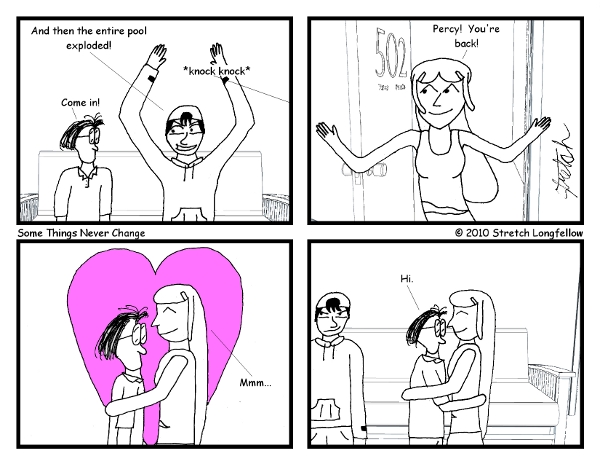 People often ask me which character is modeled after me. Truth be told, all four of the main characters have some part of me, and none are truly me. Chris is the adventurer and smart-aleck in me, Jorocks has the height, Nikki is an education major, and Percy…well, this comic kinda sums that one up.